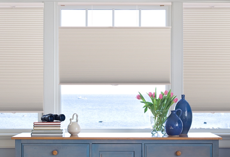 Cellular shades: Cell shades can replace your vertical blinds on large picture windows, as they are made from a material that modernizes your window treatments. Available in many different colors, these treatments can effectively control outside light by opening and closing top-down or bottom-up. Cell shades also can come in sheer material so outside light can light up the room when closed. Find more options for window shades in Charlotte.